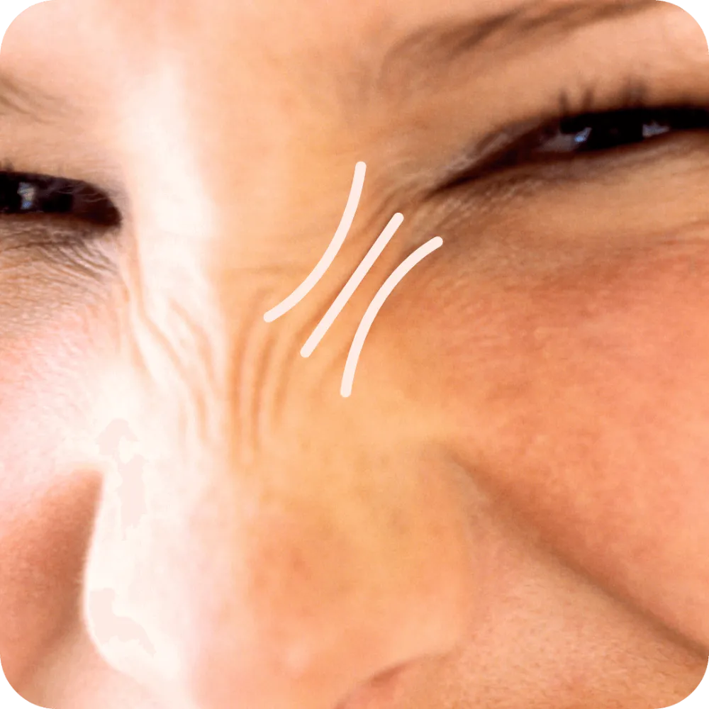 Die Bildung neuer Falten durch Mimik wird verhindert.