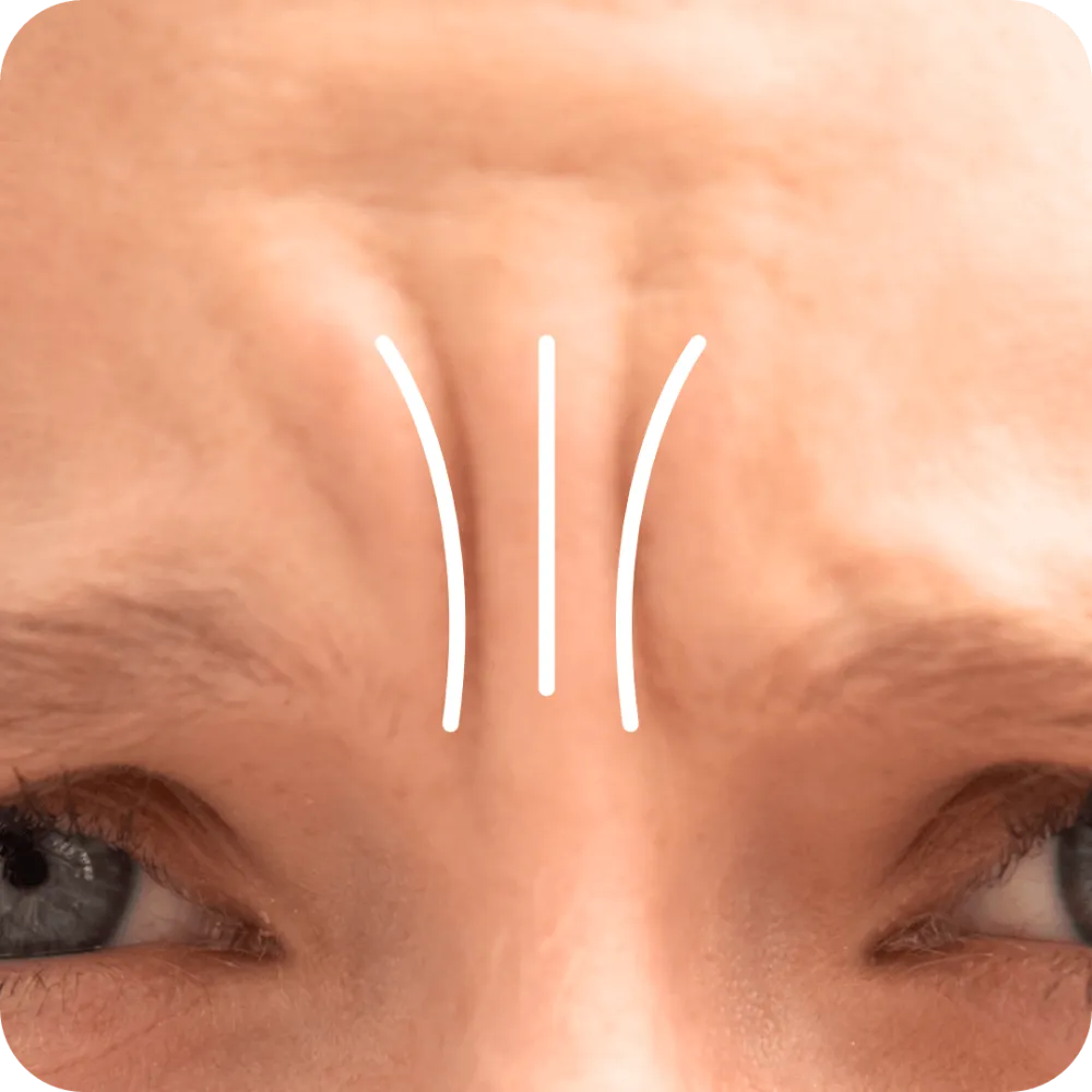 Zornesfalten (vertikale Falten zwischen den Augenbrauen)