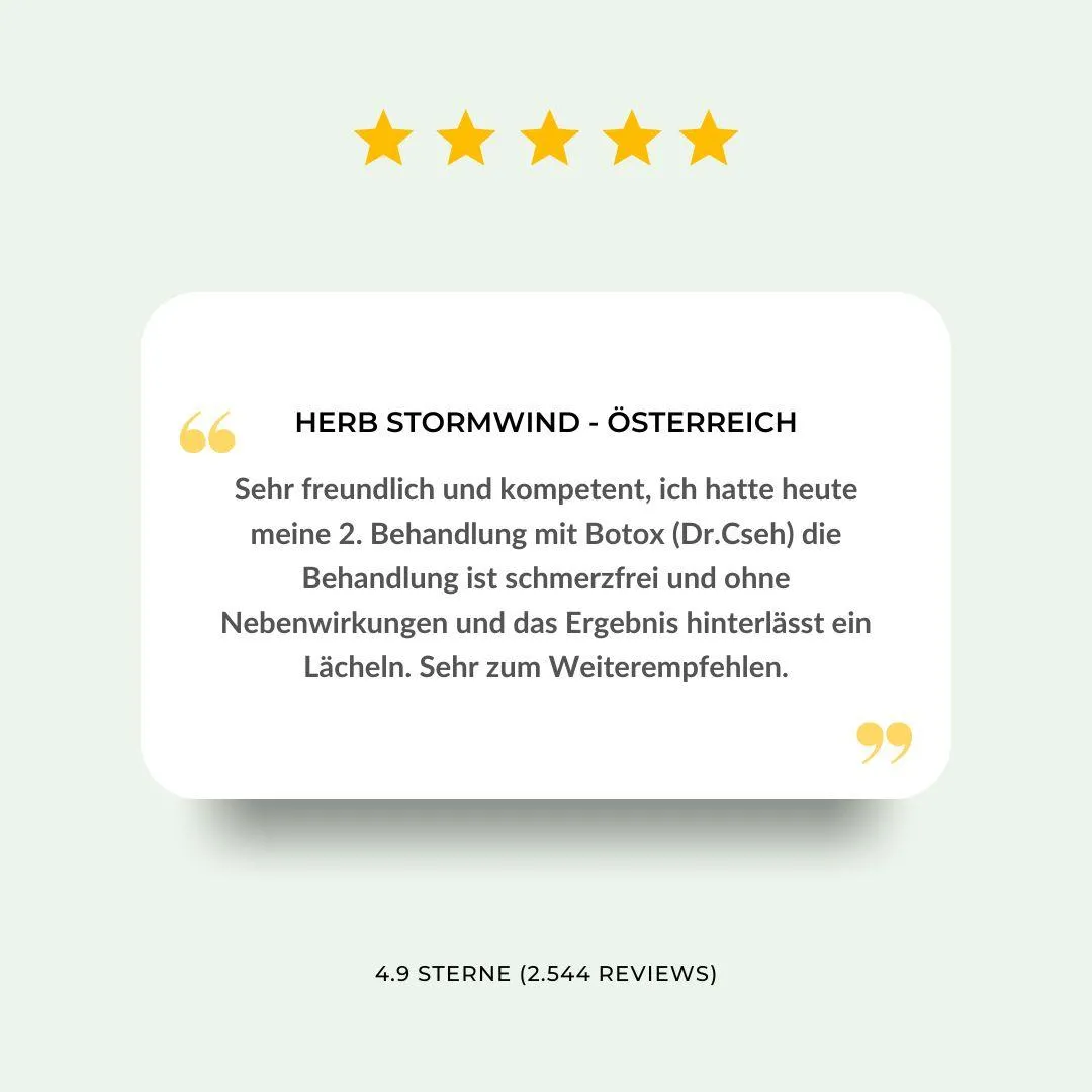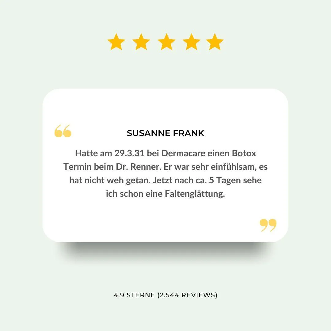 Überzeugen Sie sich selbst von den positiven Erfahrungen unserer Kunden. Erfahren Sie, wie unsere Botox-Behandlungen nicht nur ihr Aussehen, sondern auch ihr Wohlbefinden nachhaltig verbessert haben.